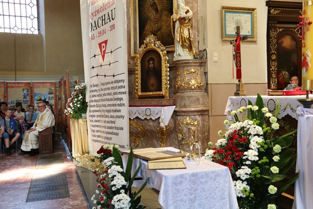 Witając biskupów, księży i wiernych ks. prał. Jacek Plota, kustosz Narodowego Sanktuarium św. Józefa w Kaliszu zaznaczył, że modlitwie towarzyszą relikwie polskich męczenników II wojny światowej, m.in.: św. o. Maksymiliana Marii Kolbego, bł. ks. Wincentego Frelichowskiego, bł. ks. Józefa Stanka Pallotyna. Dodał, że w 2010 r. abp Józef Michalik ofiarował kaliskiej bazylice Księgę Upamiętniającą Kapłanów, którzy zginęli w czasie II wojny światowej. Są tylko dwie takie księgi. Jedna znajduje się na Jasnej Górze, a druga u św. Józefa w Kaliszu. - My wszyscy chrześcijanie i Polacy, a zwłaszcza kapłani jesteśmy wdzięczni za złożoną ofiarę cierpienia i życia kapłanów męczenników z Dachau, ponieważ oni cierpieli, a połowa z nich oddała swe życie za wolność Kościoła i Ojczyzny. Ich ofiara została przyjęta. Mamy w Polsce wolność Kościoła i Ojczyzny i dlatego co roku gromadzimy się na modlitwie dziękczynnej w Narodowym Sanktuarium Św. Józefa, by modlić się za Kościół i Ojczyznę przywołując męczenników, a za zmarłych prosząc o dar nieba – powiedział kustosz kaliskiej bazyliki.