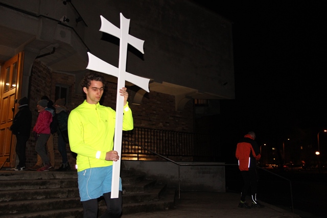Wieczorem biegacze z krzyżem i pochodniami wyruszyli z parafii św. Pawła Apostoła w Ostrowie Wielkopolskim. Bieg z zachowaniem milczenia przeplatany był 14 stacjami, podczas których odczytano rozważania pasyjne. Uczestnicy zatrzymali się także przy Klasztorze Ojców Pasjonistów w Sadowiu. Kierownikiem duchowym i dyrektorem biegu był ks. Łukasz Zawidzki, wikariusz parafii św. Pawła Apostoła w Ostrowie Wielkopolskim. - Biegowa Droga Krzyżowa to forma duchowości dla osób aktywnych, przekraczających siebie, poszukujących wyzwań i szukających Boga również poza murami kościoła. Sportowe zmaganie z bólem i trudem nocnej drogi ma nie tylko wymiar fizyczny. To przede wszystkim próba zmierzenia się z prawdą o krzyżu i sobie samym. Mamy nadzieję, że upamiętnienie męki i śmierci Pana Jezusa przez wysiłek pomoże głębiej przeżyć Wielki Post i przygotować się do wydarzeń Wielkiej Nocy – podkreśla ks. Łukasz Zawidzki.