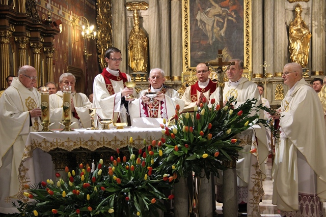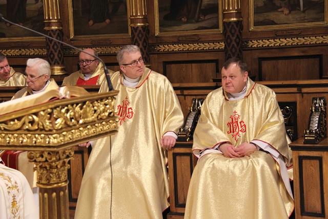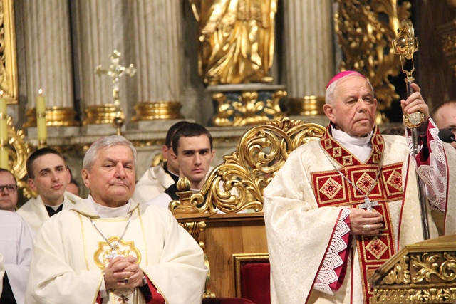 Witając biskupów, duchowieństwo i wiernych biskup kaliski Edward Janiak wskazał na św. Józefa, Opiekuna diecezji kaliskiej. - Z głębi serca pragniemy dziękować dobremu Bogu za wszystkie łaski, jakie nasza diecezja dostąpiła przez tę historyczną decyzję Jana Pawła II. Nadanie patrona św. Józefa całej diecezji to nas jeszcze bardziej zobowiązuje, bo mamy Opiekuna Kościoła Powszechnego jako naszego Opiekuna – podkreślił bp Janiak. Akcentował, że diecezja kaliska to nie tylko obiekty, ale przede wszystkim żywy Kościół. - Ks. Biskup Stanisław kierował Kościołem Kaliskim przez 20 lat i to jest piękny dar łaski Bożej, że może stanąć przy ołtarzu jako ten pierwszy świadek. Naszym obowiązkiem jest, abyśmy ten Kościół przekazali następnemu pokoleniu w nie gorszej kondycji duchowej – zaznaczył ordynariusz kaliski.