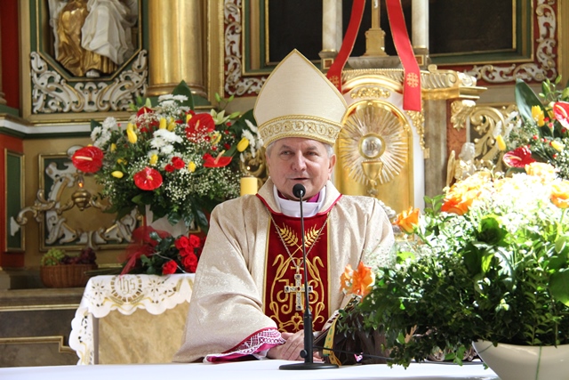Zachęcał wiernych, aby na ołtarzu składali wszystkie swoje troski i kłopoty. – Niech Pan Bóg wszystkie cierpienia, trudy, grzechy przemieni w to co jest święte – mówił ordynariusz kaliski.