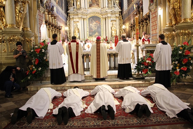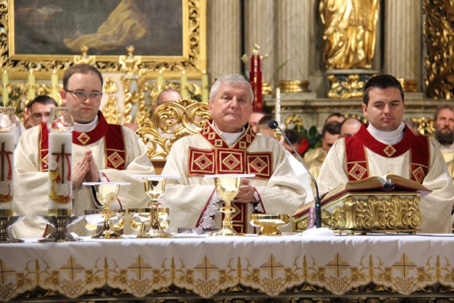 Stwierdził, że droga kapłana nie może różnić się od drogi Pierwszego Kapłana, Jezusa Chrystusa. – Bądźcie mężni w trudnościach, w kryzysach. Pamiętajcie. Słońce nie zawsze świeci. Przyjdą może kiedyś burze i nawałnice. W życiu Chrystusa było „hosanna”, ale było i „ukrzyżuj”. I w waszym życiu będzie „hosanna”. Będą chwile, gdy was będą ludzie chwalić, zachwycać się wami, ale będą chwile, kiedy was będą krzyżować, niesłusznie może oczerniać, przeinaczać wasze intencje. Nie zrażajcie się tym. Idźcie. Musicie pomóc dźwigać krzyż Chrystusowi – przekonywał hierarcha.