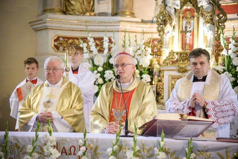 Słowa podziękowania dla ks. biskupa wypowiedzieli przedstawiciele młodzieży, która przyjęła Sakrament Bierzmowania oraz ich rodziców. Słowa podziękowania za trud przygotowania młodzieży do przyjęcia sakramentu dojrzałości chrześcijańskiej skierował do ks. Krzysztofa Lipińskiego ks. Bp Teofil oraz ks. proboszcz.
