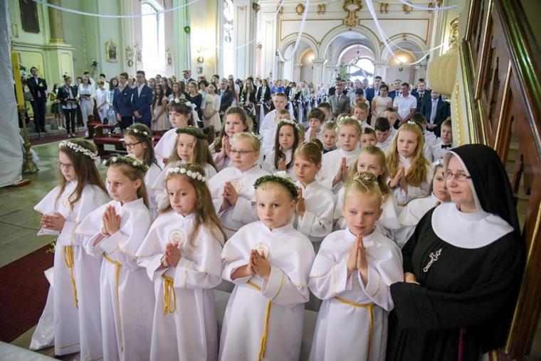 W dzień uroczystości Trójcy Świętej podczas Mszy Świętej sprawowanej o godz. 9:30 rocznicę I Komunii Świętej przeżywały dzieci uczęszczające do klasy IV.