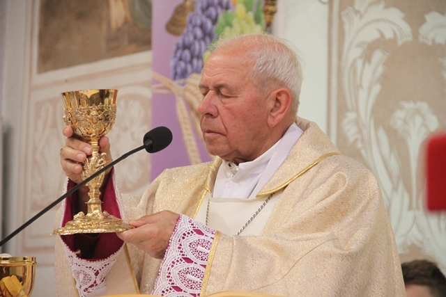 Prosił wiernych, aby przystępowali do komunii św. – „Kto spożywa moje Ciało i pije moją Krew ma życie wieczne”. Trzeba uwierzyć Jezusowi, trzeba przystępować do tej uczty, którą Pan Jezus zastawia, a której pokarmem jest On sam. Trzeba przyjmować Jego Ciało i pić Jego Krew, żeby mieć życie wieczne, bo to jest życie, którym żyje Bóg. Bóg nigdy nie umiera. Do Niego nie ma przystępu śmierć, cierpienie, smutek, ból. On jest życiem, On jest pełnią życia. Kto spożywa Ciało i pije Krew Chrystusa otrzymuje udział w życiu, którym żyje Bóg – powiedział bp Napierała.