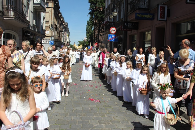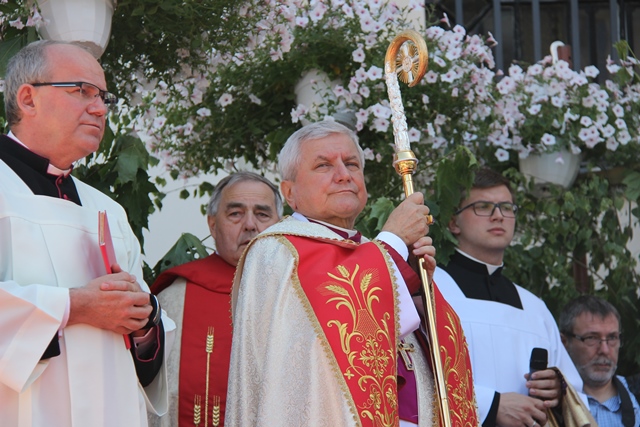 Zachęcał wiernych, aby zaprosili Jezusa do swojego życia. – Dziękujmy Panu Bogu, że możemy uczestniczyć w tej pięknej uroczystości Bożego Ciała i zaprośmy Go do swojego serca, do swoich rodzin, niech nam błogosławi w dalszym pielgrzymowaniu – powiedział bp Janiak.