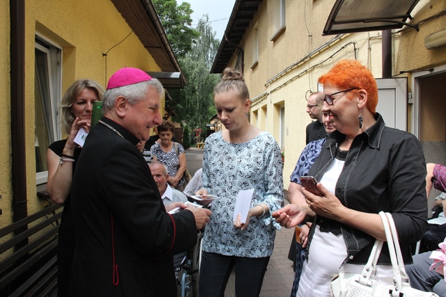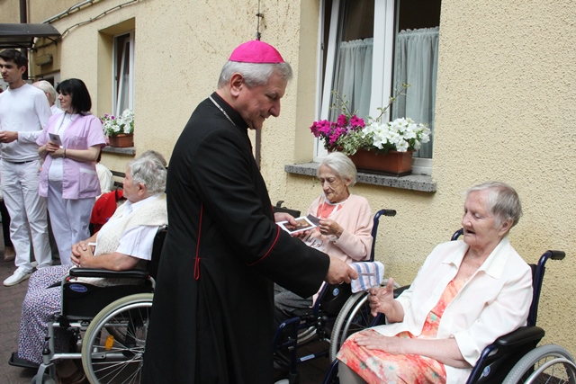 Podziękował osobom, które opiekują się pensjonariuszami. - Bardzo serdecznie dziękuję tym, którzy z siebie dają bardzo dużo energii i troski, żeby być pomocnym dla drugiego człowieka. Nie ma innej drogi, żeby pokazać Panu Bogu, że Go kochamy jak poprzez bliźniego. Dziękujemy za ludzi, którzy nam pomagają w cierpieniu, w starości, w dźwiganiu krzyża – powiedział bp Janiak.