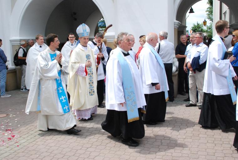 Suma odpustowa o godz. 11.00 była czasem pielgrzymki rolników i pszczelarzy. Mszy Świętej przewodniczył i homilię wygłosił JE. ks. bp Stanisław Salaterski. Homilię rozpoczął od stwierdzenia za Janem Pawłem II, że wymagania Ewangelii są trudne. Jej wypełnienie to nie tylko słowa, ale życie zgodne z jej hierarchią wartości. Powinniśmy tak gospodarować dobrami naturalnymi, aby następne pokolenia także mogły z nich korzystać. Troska o świat musi być też troską o ludzi. W siódmy dzień powinniśmy dbać o nasze sumienie. Wiele ludzi uważa, że dawniej bardziej pielęgnowało relację z Bogiem i owoce pracy były lepsze. Nasza troska o chleb musi być roztropna, bo to Bóg darzy nas swoim błogosławieństwem. Na darmo wstawać o północy, jeżeli Pańskiej nie będzie pomocy. Trzeba darzyć miłością i szacunkiem przodków, a także własną pracę, ponieważ gdy zabraknie serca i szacunku, tam gdzie zboże rosło będzie las. Matka Boża uczy nas wrażliwości na drugiego człowieka i na pracę, a także pomocy, zaradności i zatroskania. Taka postawa potrzebna jest nam wszystkim. Swoją homilię zakończył mówiąc, że gdy sercem wypełnimy naszą codzienność, będzie ona chwałą Boga.