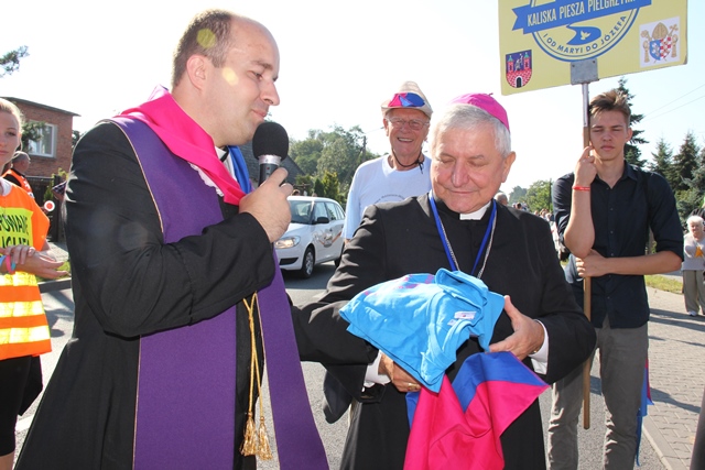 Pątników żegnał na granicy Kalisza biskup kaliski Edward Janiak. Prosił on o modlitwę w intencji ojczyzny, diecezji kaliskiej, która w tym roku obchodzi 25-lecie istnienia, a także biskupów, kapłanów, rodzin, chorych i wszystkich diecezjan.