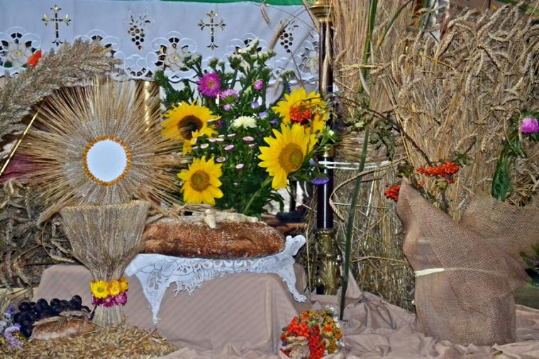 W procesji z darami przyniesiony wieńce żniwne, kosz z kwiatami, kosz z owocami i warzywami, hostie i wino. Został także przyniesiony  piękny bochen chleba, który jest symbolem pożywienia, dostatku, pomyślności. Uroczystość uświetniła orkiestra parafialna. Wychodzący z kościoła zostali poczęstowani chlebem oraz gronami winogron.