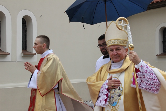Dziękował rolnikom za ich trud pracy na roli. – Drodzy rolnicy tu obecni, przyjmijcie od nas dziś nasze podziękowanie za wasz trud, za wasze poświęcenie. Was dzisiaj w szczególny sposób polecamy opiece dobrego Boga. Za waszą troskę o chleb powszedni naród jest wam wdzięczny – podkreślił hierarcha.