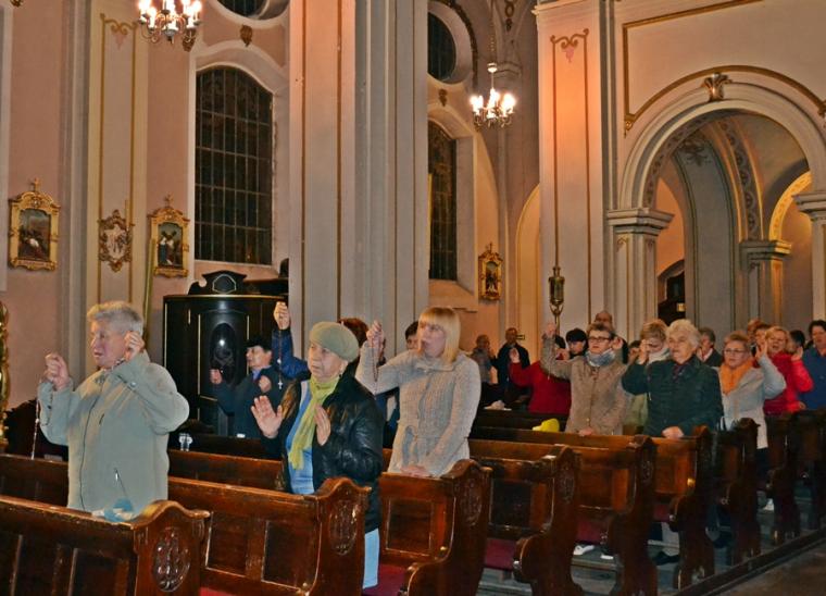 Podczas różańca fatimskiego rozważane były tajemnice bolesne. W pierwszej tajemnicy bolesnej modlitwą w sposób szczególny objęliśmy papieża Franciszka. Rozważanie każdej tajemnicy zakończone było postanowieniem. To po pierwszej tajemnicy zawarte zostało w słowach: „W chwilach samotności, niezrozumienia przez ludzi będę łączył się z Jezusem i ofiarował swoje cierpienia dla zbawienia świata”. Trudne, ale ważne dla naszego duchowego rozwoju postanowienie wybrzmiało po rozważaniu drugiej tajemnicy bolesnej. Zachęcało ono zebranych, by za przykładem Jezusa przyjmowali cierpienia w milczeniu oraz troszczyli się o czystość duszy i ciała.