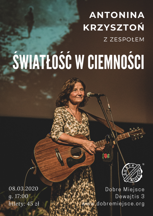 W kompozycjach mistycznej pieśniarki odnajdujemy odpowiedź na tęsknoty, które nosimy w sercu. Po raz kolejny wystąpi w Dobrym Miejscu, tym razem w koncercie “Światłość w ciemności” podczas, którego usłyszymy największe przeboje artystki.