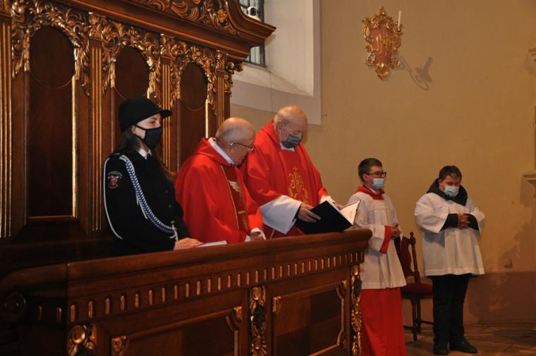 Przed końcowym błogosławieństwem ks. proboszcz poświęcił medaliki ze św. Florianem. Otrzymali je strażacy. Niech ich patron czuwa nad nimi i oręduje we wszystkich ich potrzebach i ich bliskich przed Bożym tronem.