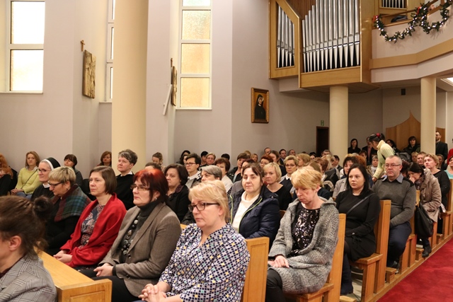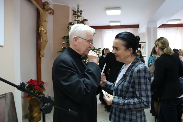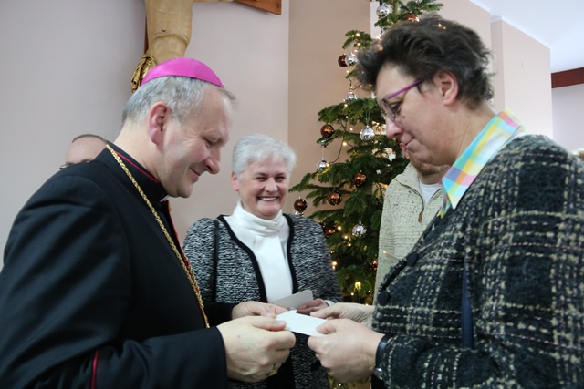 Druga część spotkania obyła się w refektarzu, gdzie bp Łukasz Buzun złożył katechetom życzenia i przełamał się opłatkiem. W spotkaniu wzięło udział ok. 300 katechetów.