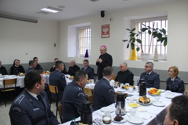 Biskup i kapłani przełamali się opłatkiem z funkcjonariuszami, siostrami zakonnymi i aresztantami.