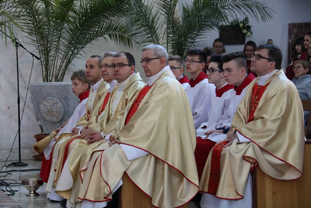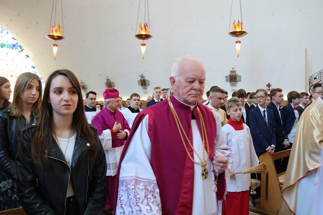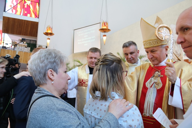 Zwracając się do młodzieży mającej przyjąć sakrament bierzmowania duchowny prosił ich, aby nigdy Chrystusa nie zdradzili i nie odeszli od Jego Kościoła. - Możemy korzystać z Bożego Miłosierdzia, a jeśli komuś brakowałby tego włożenia palca jak Tomaszowi, niech zaufa Panu Bogu z odwagą. Wątpić w Boga nie jest grzechem kiedy człowiek szuka, ale tkwić w grzechu to jest przeciw Panu Bogu. Niech to zesłanie Ducha Świętego umacnia was do odważnego dawania świadectwa miłości do Pana Boga i człowieka – mówił bp Janiak.