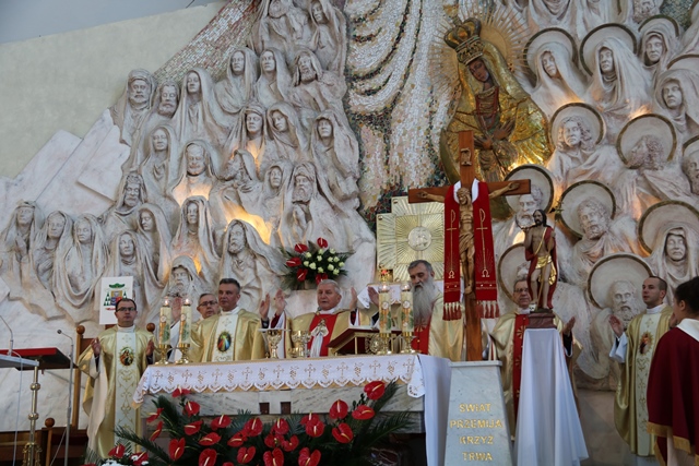 W homilii biskup kaliski wskazywał na św. s. Faustynę Kowalską, której sam Jezus polecił, by świat pouczyła o Bożym Miłosierdziu.