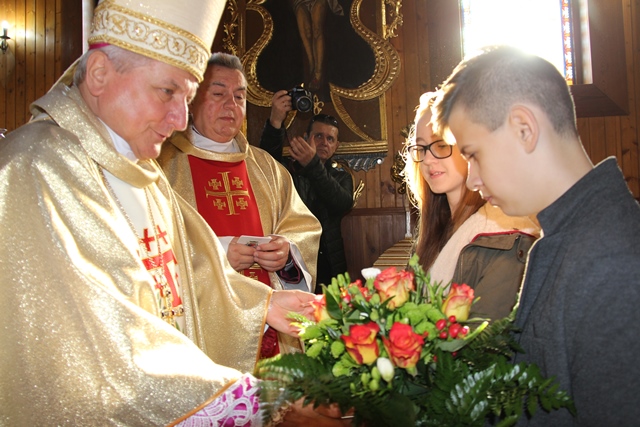 Dziękował wiernym za troskę o świątynię. - Na Kościół trzeba patrzeć przez pryzmat własnego księdza proboszcza. Kardynał Wyszyński mawiał, że obraz Kościoła nie jest taki jak go widzimy w wielkich miastach, ale trzeba iść do najmniejszych wspólnot parafialnych. Jest was niewielu, ale z wielką troską dbacie o dom Boży. To jest piękne, że następnemu pokoleniu przekażecie kościół zadbany, który świadczyć będzie o mieszkającej tutaj wspólnocie. Ta świątynia jest wyrazem waszego szacunku dla Pana Boga – stwierdził bp Janiak.