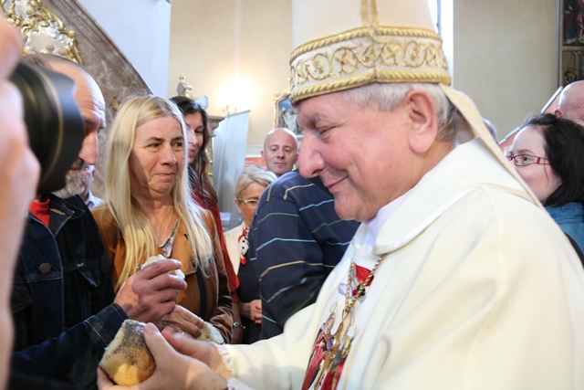Tradycyjnie już po Mszy św. biskup podzielił się chlebem ze zgromadzonymi w kaliskiej bazylice.