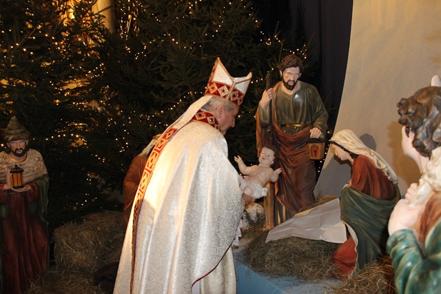 Przed rozpoczęciem Eucharystii w procesji biskup kaliski Edward Janiak zaniósł figurkę Dzieciątka do żłóbka.