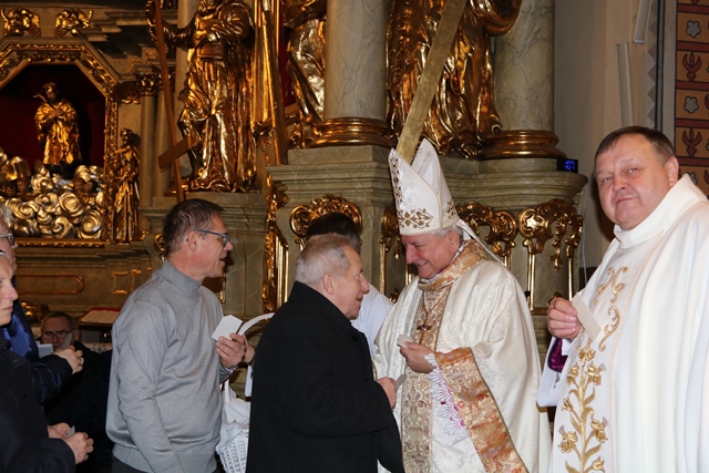 Po Mszy św. biskup i proboszcz przełamali się opłatkiem z wiernymi.