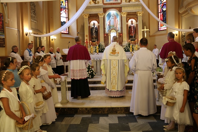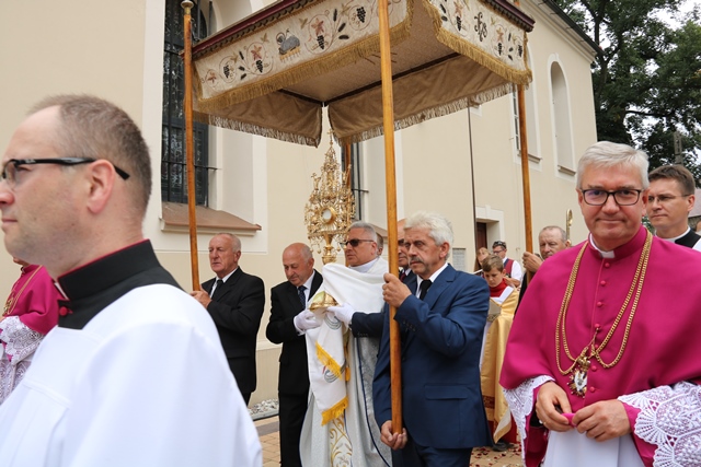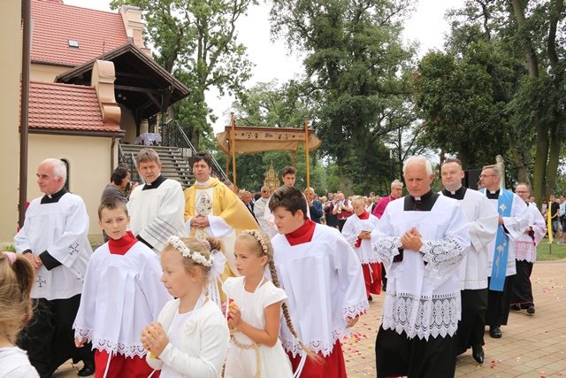 Podczas Mszy św. bp Artur Miziński poświęcił wieńce żniwne przyniesione przez rolników. Odpust zakończyła procesja wokół kościoła, błogosławieństwo Najświętszym Sakramentem i odśpiewanie hymnu „Boże coś Polskę”.