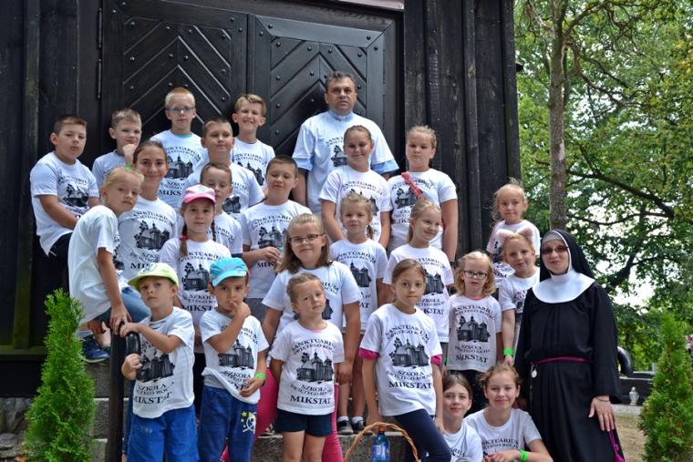 Trwają przygotowania duchowe do uroczystości odpustowych ku czci św. Rocha w Mikstacie. Mimo wakacyjnego, sobotniego dnia dzieci w godzinach przedpołudniowych przyszły na kolejne spotkanie w ramach VIII edycji Szkoły Świętego Rocha. Spotkanie rozpoczęło się modlitwą . Był w czasie tego spotkania czas na śpiew i zajęcia na świeżym powietrzu. Ich organizacją zajęła się s. Małgorzata. Były kolejne informacje o życiu św. Rocha. Święty Roch był pielgrzymem, a jego pielgrzymi szklak prowadził przez Francję i Włochy. Więc były w Rochowej Szkole zajęcia językowe. Poprowadziła je Pani Iza. Poprzez tegorocznej Szkoły młodzi poznają dziedzictwo kulturowe. W sobotnie przedpołudnie odbyli wirtualną wędrówkę szlakiem kapliczek, figur i krzyży przydrożnych znajdujących się w Mikstacie. Niespodziankę dla uczestników Rochowych spotkań przygotował ich inicjator i organizator ks. kan. Krzysztof Ordziniak. Jaką? Każde dziecko otrzymało „firmową” koszulkę Szkoły Świętego Rocha. Pięknie się w nich prezentują.