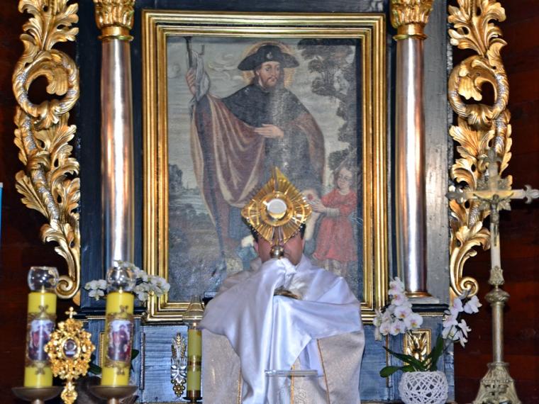 Przy wystawionym Najświętszym Sakramencie zostało odprawione nabożeństwo do św. Rocha. Odbywa się ono w Diecezjalnym Sanktuarium Świętego Rocha w każdy poniedziałek. Tym razem uczestniczyli w nim nie tylko mikstaccy parafianie i pielgrzymi, ale także słuchacze RR i TV Dom Józefa. Może zechcą kiedyś przyjechać do Mikstatu i włączyć się już bezpośrednio w wołanie ku niebu: Święty Rochu, bądź przy nas i wspieraj nas, w niewielkim rozmiarami, ale wielkim duchem sanktuarium. Po „Rochowym nabożeństwie” odmówiona została Litania do Najświętszego Serca Jezusowego. Trwamy w okresie tzw. oktawy Bożego Ciała więc po odmówieniu litanii wyruszyliśmy w procesji wokoło sanktuarium. Błogosławieństwo Najświętszym Sakramentem zakończyło modlitewne spotkanie w sanktuarium.Wielu uczestników modlitewnego spotkania uczciło relikwie ,św. Rocha. Wszyscy otrzymali folder, na którym znajdują się informacje o częstotliwości nadawania Radia Rodzina i adres internetowy TV DOM JÓZEFA.