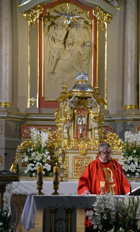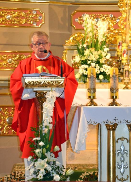 Po Mszy Świętej nadszedł czas na życzenia dla Solenizanta. Najpierw w imieniu całej wspólnoty parafialnej złożył je ks. proboszczowi główny celebrans, ks. kan. Grzegorz. Były oczywiście życzenia Bożego błogosławieństwa, opieki Maryi. Ks. kan. powiedział m.in. „ Życzę Ci, abyś był jak święty Krzysztof, który pomagał pielgrzymom przedostać się się z jednego brzegu na drugi. Abyś Ty był tym, który potrafi ludzi , którzy zostali Ci powierzeni, przeprowadzić do Domu Ojca”. Znalazł się w tych życzeniach „ Rochowy” akcent, bo posługę kustosza sanktuarium ks. kan. Krzysztof spełnia z wielkim zaangażowaniem.Potem przyszedł czas na życzenia od przedstawicieli parafian. Życzenia ks. Proboszczowi złożyła delegacja Liturgicznej Służby Ołtarza, dzieci, rada parafialna, zespół charytatywny, przedstawiciele wspólnot działających w parafii.