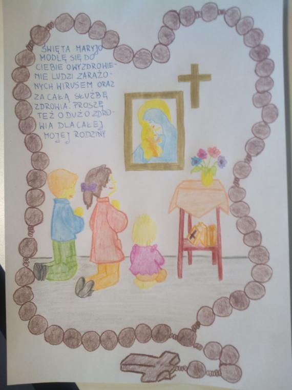 Na odzew nie trzeba było długo czekać. Już po kilku dniach zaczęły napływać pierwsze prace. Również uczniowie Zespołu Szkolno-Przedszkolnego w Męcince, wzięli  do ręki różaniec i razem z Maryją modlili się za osoby zakażone wirusem i za tych, którzy służą swoją pomocą, za całą służbę zdrowia i za swoje rodziny. Zachęceni do przesyłania prac plastycznych ochoczo zareagowali. Ponad 60 pięknych rysunków dotarło na adres szkoły. Od początku trwania kwarantanny dzieci zapewniają o modlitwie, a inicjatywa legnickiej Caritas pozwoliła w jeszcze większym stopniu zaangażować się w pomoc najbardziej potrzebującym.