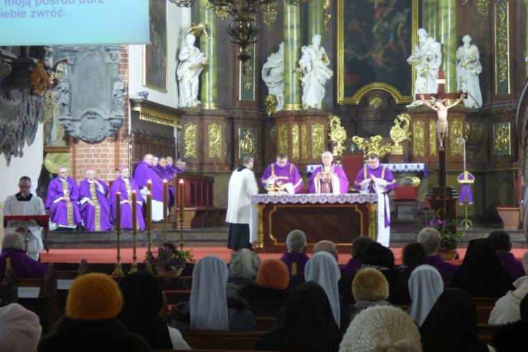 Biskup legnicki, zachęcał wszystkich do dziękczynienia Panu Bogu za dar dla diecezji Pierwszego Biskupa, który był organizatorem życia diecezjalnego. - Dziękujemy Bogu za jego posługę i modlimy się o Boże miłosierdzie dla niego. Jesteśmy w zgromadzeniu tych, którzy o nim pamiętają, korzystali z jego posługi, nim się opiekowali, byli jego bliskimi, krewnymi, przyjaciółmi. Jesteśmy w tym, co się nazywa Communio sanctorum (z łac. wspólnota świętych), dlatego że nasze życie rozpoczęte na chrzcie świętym, jest życiem ku wieczności, i dlatego czujemy tę wspólnotę, łączność, komunię – mówił ksiądz Biskup.