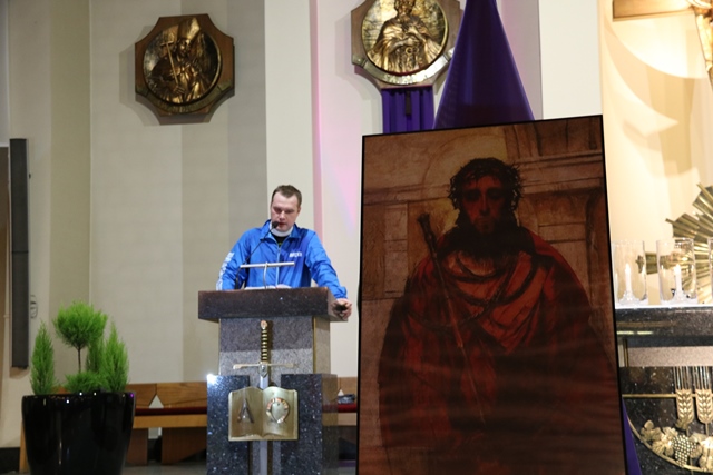 Półmaraton zakończył się w kościele św. Pawła Apostoła w Ostrowie Wielkopolskim wspólną modlitwą i rozdaniem pamiątkowych medali. Wcześniej, o godz. 21.00, w oczekiwaniu na powrót biegaczy w ostrowskiej świątyni odprawione zostało nabożeństwo drogi krzyżowej. Uczestników Biegowej Drogi Krzyżowej witał ks. kan. Jacek Kita. – Bądźcie dumni z siebie i z treści oraz wartości, które dziś ukazaliście poprzez świadectwo wiary w tej drodze krzyżowej. Bądźcie dumni z siebie, że jesteście Polakami i katolikami. Bądźcie dumni z tych treści i bądźcie tego świadkami w swoich miejscowościach. Dzisiaj świat nie potrzebuje nauczycieli, ale potrzebuje świadków. Bóg, honor i ojczyzna, a także krzyż na Giewoncie to są zawsze te znaki, które gdzieś głęboko leżą w naszych sercach - powiedział proboszcz parafii św. Pawła Apostoła w Ostrowie Wielkopolskim. Dziękował biegaczom za świadectwo wiary. - Dziękuję wam za to piękne świadectwo waszej wiary i przywiązania do tego, co stanowi filar naszej tożsamości narodowej – powiedział ks. Kita.