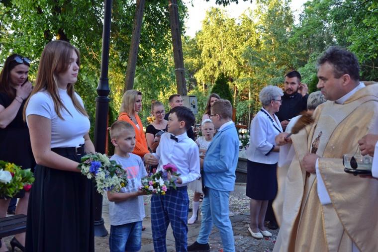 Po Eucharystii procesja wyruszyła do czterech ołtarzy, które usytuowane były na cmentarzu. Procesja przechodziła wśród grobów naszych przodków. To im zawdzięczmy naszą wiarę, ale także tradycje, które z tak wielką pieczołowitością pielęgnuje się w naszej wspólnocie i przekazuje kolejnym pokoleniom. Tak jak to już jest tradycją ołtarze przygotowali przedstawiciele poszczególnych rejonów naszej parafii. Pięknie prezentowały się ołtarze, ale Jezus znalazł także przygotowane miejsce w sercach parafian, którzy tak licznie w czasie Mszy Świętej przystąpili do Stołu Pańskiego.