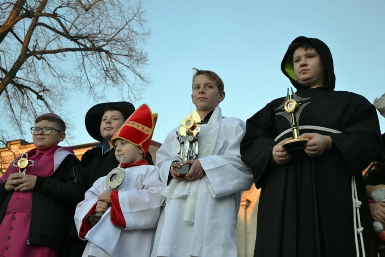 W parafii znajdują się relikwie św. Wojciecha, św. Zygmunta Szczęsnego Felińskiego, św. Maksymiliana Marii Kolbego, św. Jana Pawła II. Są i relikwie św. Rocha, ale te czekały na uczestników Marszu Świętych w sanktuarium. Zanim wyruszyliśmy na ulice miasteczka, ks. kan. Krzysztof Ordziniak, kustosz diecezjalnego Sanktuarium św. Rocha w Mikstacie przekazał relikwie tym dzieciom, które przebrały się za tych właśnie świętych. To te dzieci stanowiły czoło mikstackiego Marszu Świętych. Za nimi szły dzieci, które przebrały się za Świętego Rocha, patrona naszego sanktuarium, ale i miasta. Byli oczywiście i inni święci.