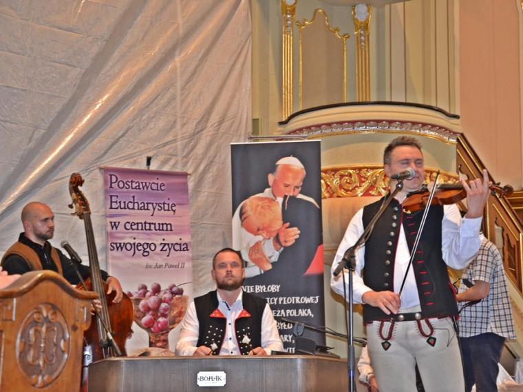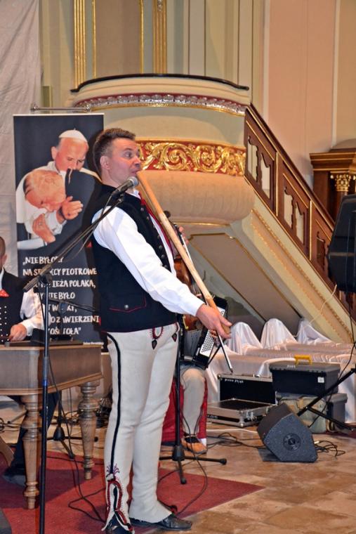 Po Mszy świętej odbył się koncert Zebrani w kościele usłyszeli wyjaśnienie znaczenia nazwy Kapeli. Było kilka słów o miłości św. Jana Pawła do gór. Potem dźwięki góralskiej muzyki wypełniły naszą świątynie. W doświadczeniu klimatów górskich i miejsc, które szczególnie ukochał Papież – Polak pomocna była prezentacja multimedialna.
