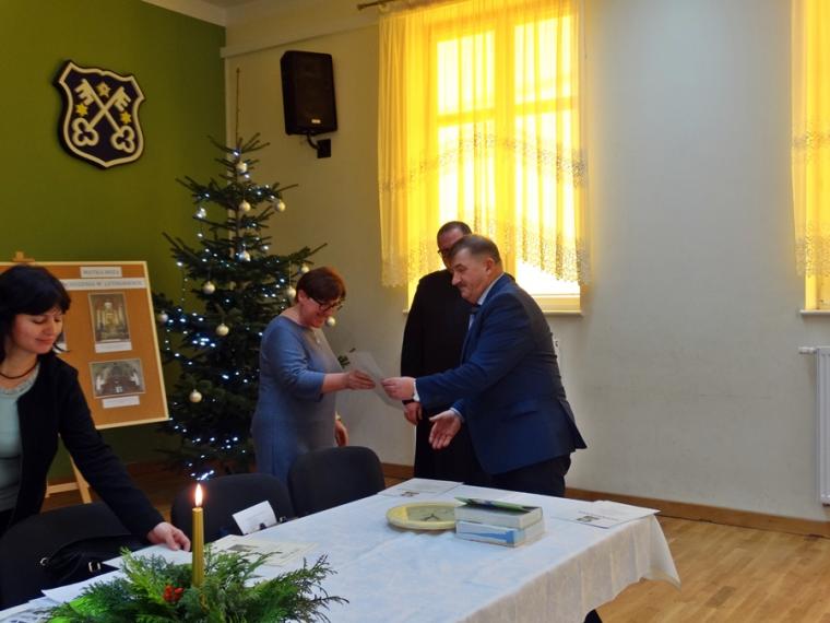 Następnie uczestnicy konkursu wraz z opiekunami udali się do sanktuarium Matki Bożej Pocieszenia. Tu jego kustosz, ks. kanonik Łukasz Żurawski zapoznał wyjątkowych pielgrzymów z historią sanktuarium oraz opowiedział o obrazach i figurach świętych, znajdują się w ołtarzu głównym i ołtarzach bocznych świątyni. Ksiądz kustosz wręczył nagrodę specjalną Aleksandrze Frala- obraz Matki Bożej Pocieszenia. Aleksandra zdobyła największą ilości punktów w części konkursowej dotyczącej Sanktuarium Matki Bożej Pocieszenia w Lutogniewie. Zorganizowany konkurs to ciekawa inicjatywa, która zmotywowała uczestników do pogłębienia wiedzy o miejscowym sanktuarium, a także o sanktuarium w Gietrzwałdzie w 140. rocznicę objawień. Organizatorem konkursu była katechetka Agata Hadryś.