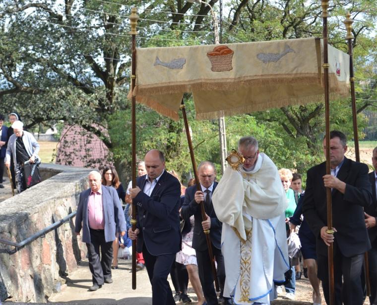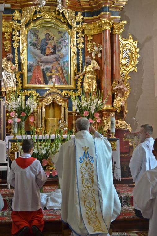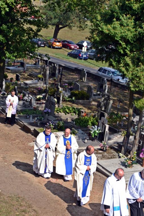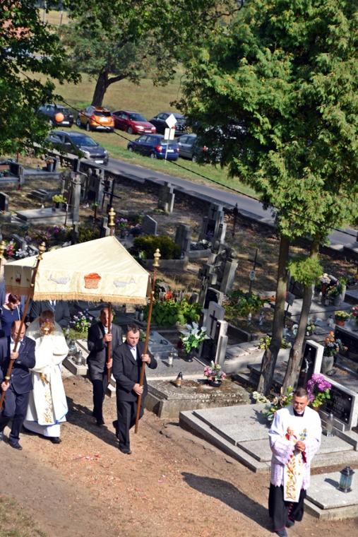 Kończąc kaznodzieja powiedział: „ Rozważając rodowód Jezusa Chrystusa nie zamartwiajmy się zbytnio, że jesteśmy, słabi, grzeszni. Jeśli przychodzimy do Chrystusa Pana i Jego Matki On z nami zrobi wielkie rzeczy. Bóg z tymi, którzy Go miłują współdziała we wszystkim. Amen”. Wiele ważnych słów wybrzmiało w homilii ks. kan. Jacka warto do nich powracać, uczynić je przedmiotem głębszej refleksji, a także rachunku sumienia. Po Mszy Świętej główny celebrans pobłogosławił ziarna zbóż. Następnie przy wystawionym Najświętszym Sakramencie odmówiona została Litania do Matki Bożej i procesja Eucharystyczna wyruszyła ścieżkami wiodącymi wśród grobów tych, którzy kiedyś oddawali cześć Matce Boskiej Kotłowskiej. Po końcowym błogosławieństwie odśpiewana została pieśń „ Boże coś Polskę”. Piękny jest ten odpustowy czas, dobrze spędzać go u stóp Matki Bożej Kotłowskiej, która z takim zatroskaniem spogląda na swe dzieci z ukoronowanego wizerunku.