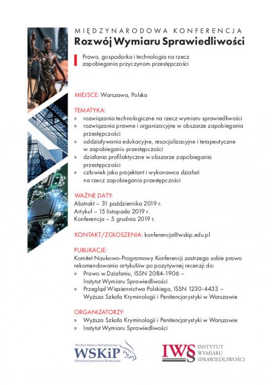 Celem konferencji jest prezentacja wyników badań, wymiana wiedzy i dobrych praktyk w zakresie rozwiązań technologicznych, prawnych i organizacyjnych w obszarze zapobiegania przestępczości oraz w obszarze oddziaływań edukacyjnych, resocjalizacyjnych, terapeutycznych i profilaktycznych w zapobieganiu przestępczości.