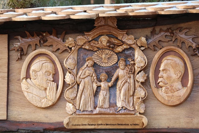 - Moim marzeniem było utworzenie w lesie miejsca kultu religijnego oraz pamięci ku czci leśników i myśliwych, którzy wyrośli z jednego pnia. Z racji obchodzonego Nadzwyczajnego Roku Świętego Józefa Kaliskiego umieściliśmy obraz Świętej Rodziny, a symbolami 100. rocznicy odzyskania przez Polskę niepodległości są rzeźby św. Jana Pawła II i Marszałka Józefa Piłsudskiego – powiedział w rozmowie z KAI myśliwy Józef Bażant z Koła Łowieckiego nr 37 „Słonka” w Dzierzbinie, który dodaje, że w wykonaniu dzieła pomogli mu artyści Tadeusz Jarczewski i Bolesław Białecki.