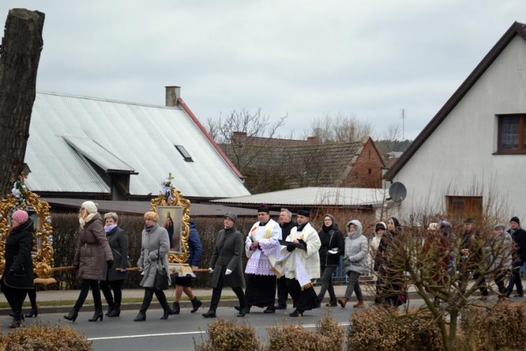 Po odprawieniu Nowenny do Miłosierdzia Bożego  z krzyżem, paschałem, figurą Chrystusa zmartwychwstałego, feretronami i sztandarami,  wyszliśmy na ulice naszego miasteczka. W naszą drogę do Emaus wyruszyliśmy z naszymi duszpasterzami: ks. kan. Krzysztofem Ordzinikiem, ks. Krzysztofem Lipińskim i ks. Mateuszem  Puchałą. Ks. Krzysztof Lipiński niósł zapalony paschał, natomiast ks. kan. Krzysztof wraz z ks. Mateuszem prowadzili nabożeństwo Drogi Światła. Pierwsze spotkanie ze zmartwychwstałym Panem rozważaliśmy przed kościołem pw. Świętej Trójcy. Warto dodać, że wspólnota parafialna przygotowuje się do obchodów 100-lecia jego konsekracji. Ostatnie, przy Diecezjalnym Sanktuarium Świętego Rocha. Sanktuarium położone jest w centralnym punkcie cmentarza. Tu wielu uczestników procesji ma groby swoich bliskich. Dla nich przesłanie “Pan zmartwychwstał” nabiera tu szczególnego znaczenia. Daje nadzieję na spotkanie z tymi, którzy poprzedzili nas w  pielgrzymce do Ojczyzny niebieskiej.