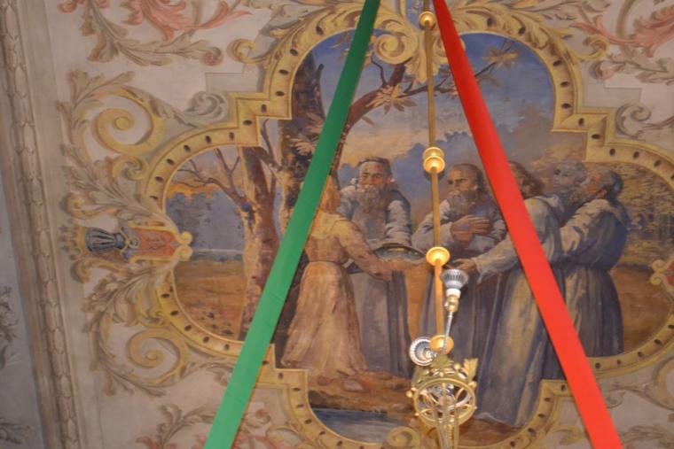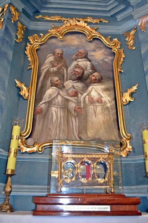 Z Lichenia udaliśmy się do Kazimierza Biskupiego. Tu nawiedziliśmy kościół pw. św. Marcina, który jest jednym z najstarszych  w Wielkopolsce. Najstarsza jego część datowana jest na 1020 rok. Jest to także sanktuarium  Pięciu Braci Męczenników. O ich życiu, męczeństwie, kulcie, historii opowiedział nam przewodnik. Sufit w kościele zdobią piękne polichromie. W zwieńczeniu ołtarza bocznego znajduje się obraz św. Rocha,  tak bliskiego naszej wspólnocie parafialnej. Z sanktuarium Pięciu Braci Męczenników przeszliśmy do zabytkowego klasztoru Misjonarzy Świętej Rodziny. Zapoznaliśmy się z jego historią. Kleryk będący  przewodnikiem opowiedział nam o miejscach posługiwania misjonarzy oraz o tym,  jak wygląda dzień w klasztorze. Zwiedziliśmy także salkę z pamiątkami  przywiezionymi z misji.