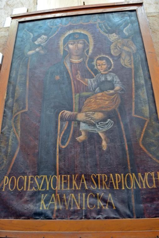 Czas niestety szybko upływa i trzeba było opuścić  gościnny  Kazimierz Biskupi. Przed nami było jeszcze jedno sanktuarium do nawiedzenia. W  Kawnicach zatrzymaliśmy się, by poznać historię kolejnego sanktuarium oraz   pokłonić się Matce Bożej Pocieszenia. Opiekę nad nim sprawują księża salezjanie. Liczący prawie czterysta lat łaskami słynący obraz został ukoronowany w 1974 roku. Bardzo ciekawe, warte poznania są jego losy, podobnie jak i historia siedmiu kolejnych świątyń budowanych w tej miejscowości. Wiele osób na kartkach pozostawiło swoje prośby i podziękowania do Kawnickiej Pani.