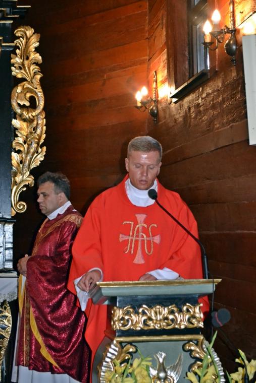 Rozpoczynając homilię celebrans wyraził słowa uznania dla zaangażowania ks. kan. Krzysztofa Ordziniaka za zaangażowanie w rozwój kultu św. Rocha oraz ożywianie ducha wiary w parafii. Podkreślił, że postawa ta nawiązuje do słów Ewangelii- kapłan traci swoje życie, aby mieć życie wieczne. Następnie przyznał, że stajemy przed trudnym wyzwaniem polaczenia rozważania o dwóch świętych: św. Wawrzyńcu i św. Rochu. Podkreślił, że to co ich łączyło to dążenie do świętości, męczeństwo, niezłomna wiara i oddanie sprawom Bożym. Nawiązując do słów błogosławieństwa podkreślił, że tylko Bóg wie ile osób jest prześladowanych za wiarę, ile w jej obronie oddało życie, ile jest w stanie dla Niego poświęcić wszystko, by ukazać światu rzeczywistość wynikającą z życia wiarą. W dalszej części homilii ks. Witold przywołał statystyki ukazujące skalę zjawiska prześladowania za wiarę w czasach współczesnych. Nawiązując do postaci św. Wawrzyńca podkreślił, że decydując się na życie wiarą powinniśmy być przygotowani na cierpienia, wyszydzanie za gesty wiary, pobożności. Kontynuując kapłan powiedział: Prześladowany dla Kościoła, dla Chrystusa to ubogi dla świata, ale bogaty dla Stwórcy”. Zaakcentował, że tym którzy nie znają Boga, albo znają, ale nie chcą żyć zgodnie z jego nauką wydaje się, że bogactwa tego świata nigdy nie przeminą . Podkreślił, że tym czego człowiek nie powinien nigdy stracić jest wiara w Boga.