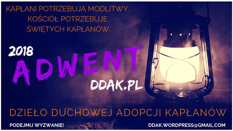 Jak co roku Dzieło Duchowej Adopcji Kapłanów zaprasza do podjęcia modlitwy za kapłanów w ramach Adwentowego postanowienia. Adopcje podjęte na ten okres mogą rozpocząć się w pierwszą niedzielę Adwentu lub dowolny dzień (w zależności od daty przesłanego zgłoszenia) i będą one trwały do 24 grudnia. Zgłoszenia można przesyłać za pomocą adwentowego formularza, który znajduje się >> TUTAJ <<