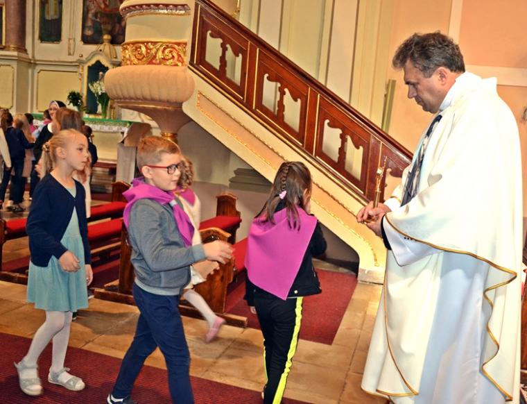 Podczas tej Eucharystii lekcje odczytane zostały przez siostrę Małgorzatę i siostrę Sylwię. Dzieci uczęszczające do świetlicy prowadzonej przez siostry przygotowały modlitwę powszechną. W dialogowanej homilii z dziećmi ks. kan. Krzysztof nawiązując do słów Ewangelii zaakcentował, że każdy z nas jest bardzo cenny w oczach Boga. Bóg każdego woła i szuka. Gdy Bóg nas woła możemy przyjść do kościoła, a gdy zdarzy nam się zrobić coś złego Pan Jezus czeka na nas w sakramencie pokuty. Ksiądz kanonik zachęcił dzieci, by wkleiły do zeszytu 1 grosz, który będzie im przypominał o tym, że są bardzo ważne dla Boga. W procesji z darami przyniesiono: płonącą świecę, kwiaty,winogrona, chleb, wodę i wino, hostię.