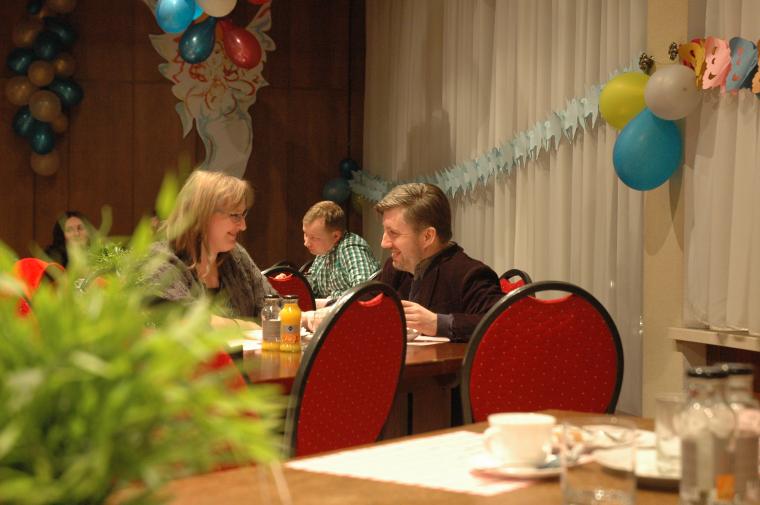 20:30-22:00 walentynkowa randka (słodki poczęstunek przy osobnych stolikach i nastrojowej muzyce) dla par, spotkanie z małżeństwem z Fundacji Pomoc Rodzinie z Łomianek.