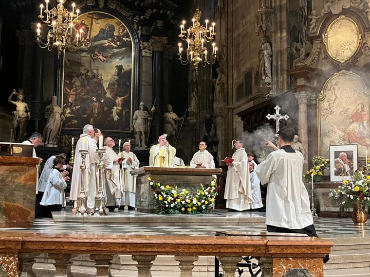 "Wszyscy tu dzisiaj zgromadzeni jesteście wielbicielami Jana Pawła II, papieża, który beatyfikował i kanonizował więcej osób niż ktokolwiek przed nim” – zwrócił się bp Schwarz do wiernych przybyłych do katedry z całego Wiednia. Nie zabrakło także Polaków, licznie reprezentowanych przez wspólnoty i organizacje polskie oraz osoby prywatne. Alois Schwarz celebrował Mszę św. w ornacie, który Karol Wojtyła miał na sobie podczas sprawowania liturgii w katedrze św. Szczepana w 1983 r.