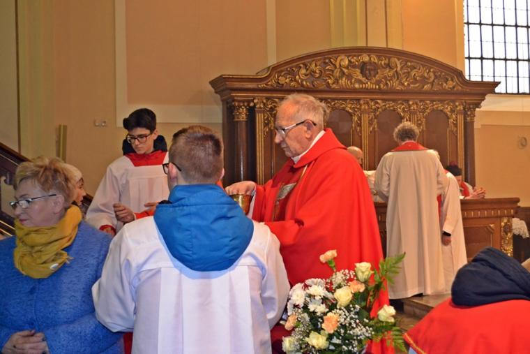 5. lutego w obchodzone jest liturgiczne wspomnienie Świętej Agaty dziewicy i męczennicy. W mikstackiej farze w ołtarzu bocznym znajduje się jej obraz. Wiele osób zapewne słyszało o odbywających się w Mikstacie uroczystościach odpustowych ku czci Świętego Rocha połączonych z obrzędem błogosławieństwa zwierząt. O uroczystościach odpustowych ku czci Świętej Agaty zapewne niewielu, chociaż jej kult jest tu żywy od stuleci. Stało się już tradycją w mikstackiej wspólnocie, że uroczysta suma odpustowa ku jej czci sprawowana jest w niedzielę. W tym roku przeżywaliśmy ją 4. lutego. Tak jak to się już stało tradycją, odpustową sumę, sprawowali Kapłani z Domu Księży Emerytów Jana Pawła II z Ostrowa Wielkopolskiego. Wraz z nimi przy ołtarzu stanął pochodzący z naszej parafii ks. kan. Zbigniew. Dlaczego mówimy o tradycji? Bo w tym roku zasłużeni dla kaliskiej diecezji Kapłani, którzy zakończyli już posługę w swoich parafiach po raz jedenasty przybyli do naszej wspólnoty, by dzielić z nami radość odpustowego czasu i sprawować Eucharystię. Na początku mszy św. ks. kan. Krzysztof Ordziniak przedstawił przybyłych Kapłanów i intencje, w których się modlili. Na ręce ks. prał. Jana Wolniaka, Dyrektora Domu Księży Emerytów im. Jana Pawła II złożył podziękowania za pomoc i posługę, ale także za sprawowane msze święte w intencji naszych zmarłych parafian. Uroczystej koncelebrowanej sumie odpustowej przewodniczył i kazanie wygłosił ks. kan. Marian Dopieralski. Ubogacił niezwykle zebranych w mikstackim wieczerniku wiernych swoim słowem ks. kan. Dopieralski, ale także zmobilizował do refleksji nad swoją wiarą. Rozpoczynając homilie kaznodzieja zwrócił uwagę , że cechą natury ludzkiej jest to, że odczuwa potrzebę istnienia Kogoś, kto ten świat stworzył od Kogo zależy los świata i człowieka. Podkreślił, że nawet człowiek niewierzący ma zalążek wiary. Ks. kan. przywołał słowa nieżyjącego już filozofa Leszka Kołakowskiego: „ Nie będę odpowiadał na pytanie, czy wierzę w Boga, bo myślę, że Pan Bóg już to wie". W dalszej części homilii kaznodzieja przypomniał krótko historię życia i męczeństwa św. Agaty dziewicy i męczennicy, podkreślając, że nawet okrutne tortury nie odwiodły jej od wiary. Kontynuując rozważanie ks. kan. zachęcił zebranych do refleksji nad pytaniami: jak to się dzieje, że człowiek oddaje swoje życie za wiarę, ale także nad tym, jak to możliwe, że człowieka zabija drugiego człowieka. Kaznodzieja zaakcentował, że „Męczeństwo na tej ziemi nie jest przypadkiem. Męczeństwo jest powszechne, bo wtedy kiedy już nie przekonują żadne argumenty pozostaje, pozostaje jeszcze jeden argument- argument męczeństwa”. Historia męczenników się nie skończyła, bo wciąż przelewana jest krew chrześcijan. Jak podkreślił z naciskiem przytaczając dane statystyczne, nie jest przypadkiem, że św. Jan Paweł II nazwał XX wiek, wiekiem męczeństwa. Kaznodzieja zwrócił uwagę, że wielu krajach nie wolno nosić ani stawiać krzyża. Zapewne zachętą do osobistego rachunku sumienia były słowa: „ Wielu z nas nie potrafi stanąć w obronie swoich przekonań, wielu nie potrafi poprzeć tego, który broni swojej wiary, który daje świadectwo o wierze”. W dalszej części homilii ks. Kan. Dopieralski zwrócił uwagę, że wielki wyzwaniem, ale i zadaniem są dla nas męczennicy, patronka św. Agata, ale także współcześni męczennicy. Kaznodzieja przywołał zamordowanych w Peru franciszkanów o. Zbigniewa i o. Michała, a także zamordowaną przed rokiem wolontariuszkę Helenkę Kmieć. Słowa skierowane do wiernych kaznodzieja zakończył modlitwą: „ Święta Agato, pragniemy Cię prosić, o wiarę prostą, szczerą, żywą o wiarę prawdziwą. W świecie, który zapomina o Bogu, które zepchnął Ciebie na najniższy poziom hierarchii wartości, prosimy Cię dla nas o silną wiarę i odwagę jej wyznawania. Amen. Po zakończonej Eucharystii ks. kan. Marian Dopieralski pobłogosławił chleb i sól. Mają one chronić przed pożarami, podróżujących i kierowców przed nieszczęśliwymi wypadkami. Chleb i sól pobłogosławione w uroczystość św. Agaty podane zwierzętom mają chronić je przed chorobami. Kawałek chleba pobłogosławiony w dzień odpustu Świętej Agaty zabierany przez tych, którzy wyjeżdżają na dłużej ma ułatwić rozłąkę. Wielu wiernych zabrało ze sobą do domów pobłogosławiony chleb…