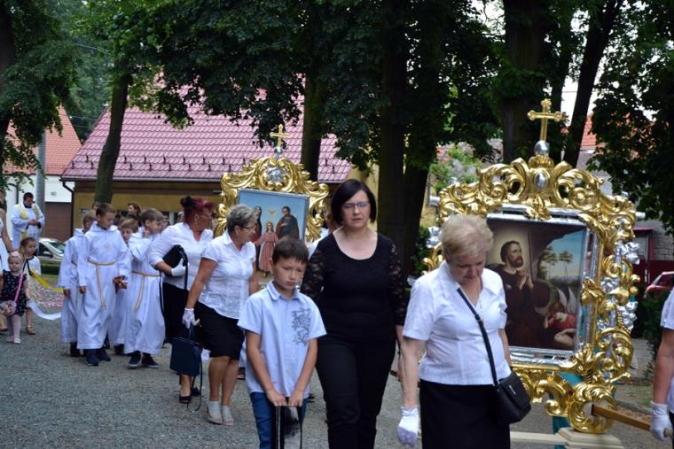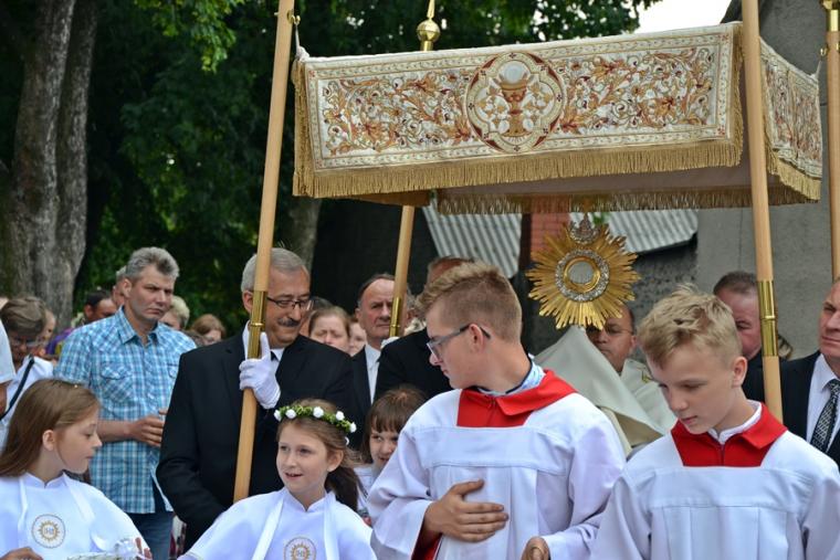 W procesji z darami dzieci przyniosły chleb wodę i wino oraz hostie. Po zakończeniu Mszy Świętej został wystawiony Najświętszy Sakrament i odmówiona Litania do Trójcy Przenajświętszej, a następnie wyruszyliśmy z procesją wokoło kościoła. Po błogosławieństwie udzielonym Najświętszym Sakramentem licznie zebranym w mikstackim wieczerniku wiernym wybrzmiała pieśń „Boże coś Polskę…”.