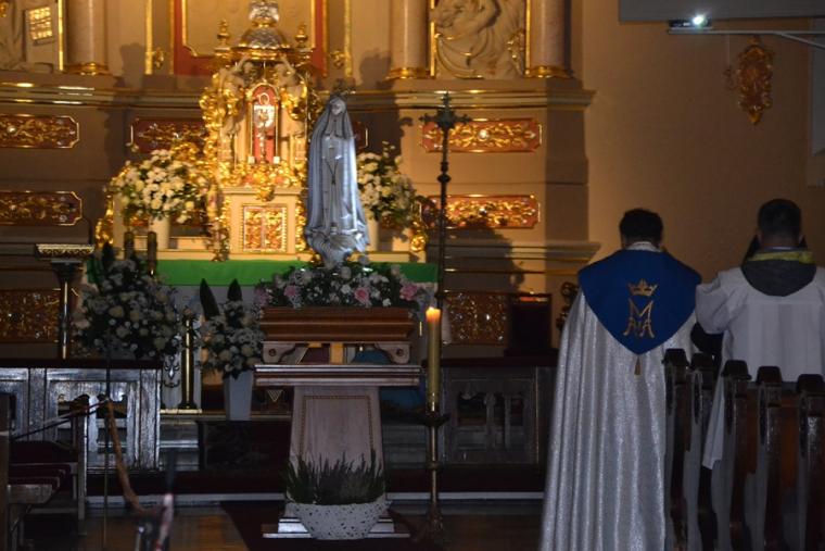 Piękny duchowo był dzień 13 października A.D. 2019 roku. Zbiegło się w nim tyle ważnych wydarzeń. Przypadł tym razem w niedzielę, dzień Pański. W tym dniu przeżywaliśmy także XIX Dzień Papieski, który tym razem przebiegał pod hasłem: „Wstańcie, chodźmy”. Wreszcie był to dzień fatimski. W niedzielny wieczór mikstacka świątynia wypełniła się wiernymi, którzy w tym szczególnym dniu przyszli na ostanie w tym roku nabożeństwo fatimskie. Nabożeństwu przewodniczył ks. kan. Krzysztof Ordziniak. Przed 102 laty miało miejsce szóste objawienie fatimskie. Przy pięknie ozdobionej kwiatami figurze Matki Bożej Fatimskiej ustawionej w środkowej nawie płonęła świeca. To od niej, po zakończeniu trzeciej tajemnicy, ministrant odpalił świeczkę i zaniósł płomień jej wiernym zebranym w kościele. Na początku ks. proboszcz przybliżył zebranym okoliczności szóstego objawienia się Fatimskiej Pani. W czasie tego objawienie Maryja powiedziała do Łucji: „chcę ci powiedzieć, żeby zbudowano tu na moją cześć kaplicę. Jestem Matką Boską Różańcową. Trzeba w dalszym ciągu codziennie odmawiać różaniec”. Zapowiedziała także zakończenie wojny. We wrześniu Maryja zapowiadała „ w październiku przybędzie również Nasz Pan, Matka Boża Bolesna i z Góry Karmelu, św. Józef z Dzieciątkiem Jezus, żeby pobłogosławić świat”. Z relacji zgromadzonych wynikało, że zobaczyli św. Józefa z Dzieciątkiem Jezus i Maryją. Święty Józef z Dzieciątkiem błogosławili świat wykonując ręką znak w kształcie krzyża. Podczas tego objawienia miał miejsce cud słońca. W jego atmosferę wprowadziły nas przytoczone przez ks. kanonika opisy prasowe z tamtego okresu. Nawiązując do słów Ewangelii, które Kościół przeznaczył na XXVIII niedzielę ks. kan. Krzysztof zachęcał zebranych, by ta modlitwa różańcowa była naszym dziękczynieniem za pontyfikat św. Jana Pawła II, za Jego przykład umiłowania Maryi, ale także za ocalenie Go podczas zamachu. W modlitwie polecaliśmy także naszą ojczyznę. Był też czas, by w cichości serca przedstawić Pani z Fatimy nasze osobiste intencje, zarówno podziękowania jak i prośby, z którymi przyszliśmy na modlitewne spotkanie.Rozważaliśmy tajemnice chwalebne różańca. Kontemplacja każdej tajemnicy zakończone było postanowieniem. W pierwszej tajemnicy rozważaliśmy Zmartwychwstanie Pana Jezusa. Postanowienie, które wybrzmiało po rozważeniu tej tajemnicy zachęcało nas do ożywienia w sobie życia nadprzyrodzonego poprzez częste korzystanie z sakramentów świętych. W drugiej tajemnicy rozważaliśmy Wniebowstąpienie Jezusa. Ważne dla naszego duchowego rozwoju postanowienie wybrzmiało po rozważaniu drugiej tajemnicy chwalebnej. Zachęcało ono do unikania najmniejszego grzechu i zgadzania się zawsze z wolą Bożą. W kolejnej tajemnicy rozważaliśmy Zesłanie Ducha Świętego. Po tej tajemnicy popłynęły do zebranych słowa zachęty do codziennej modlitwy do Ducha Świętego. Po czwartej tajemnicy wybrzmiały następujące słowa postanowienia: „ Dozwól Panno Święta, bym Cię godnie chwalił. Udziel mi mocy przeciw Twoim wrogom". Rozważając piątą tajemnicę uczestniczący w nabożeństwie usłyszeli słowa zachęty do tego, by uczynili Maryję Królową swoich serc. Następnie odmówiliśmy modlitwę Anioła z Fatimy do Trójcy Przenajświętszej, by po jej zakończeniu za krzyżem i figurą Matki Bożej ze śpiewem „ Z dalekiej Fatimy…”, z płonącymi lampionami wyruszyć w procesji wokół kościoła. Z wieży rozległo się bicie dzwonów. Był to znak, że właśnie wybiła godzina 21:00 i czas na Apel Jasnogórski, który zaśpiewaliśmy w łączności z Jasną Górą- duchową stolicą Polski. Ksiądz kanonik udzielił wszystkim błogosławieństwa. Potem otoczyliśmy figurę Fatimskiej Pani i zaśpiewaliśmy kołysankę „Zapada zmrok…”. Piękny duchowo dzień 13 października za nami…